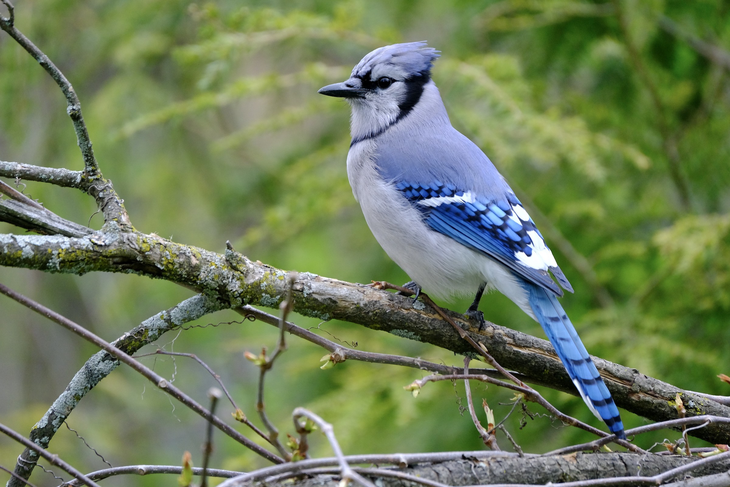 Blue Jay Cyanocitta cristata • Marlene Kraml E 19 May 2020 • Kingston--67 Alwington Avenue, Frontenac, Ontario, Canada ***** 25 ratings + Rate quality Report 7 eBird checklist S69350899 © Macaulay Library ML236769911